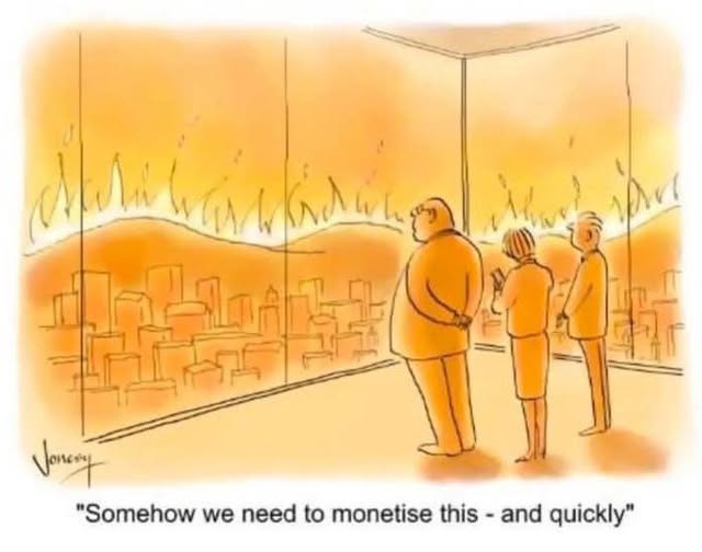 The above cartoon was floating around the internet during the California wildfires of early 2025. Those fires are a tragedy, as is any loss of human life and natural disasters. Having gone through Australia’s “Black Summer” in early 2020, I feel for all my friends in California and hope they are OK.